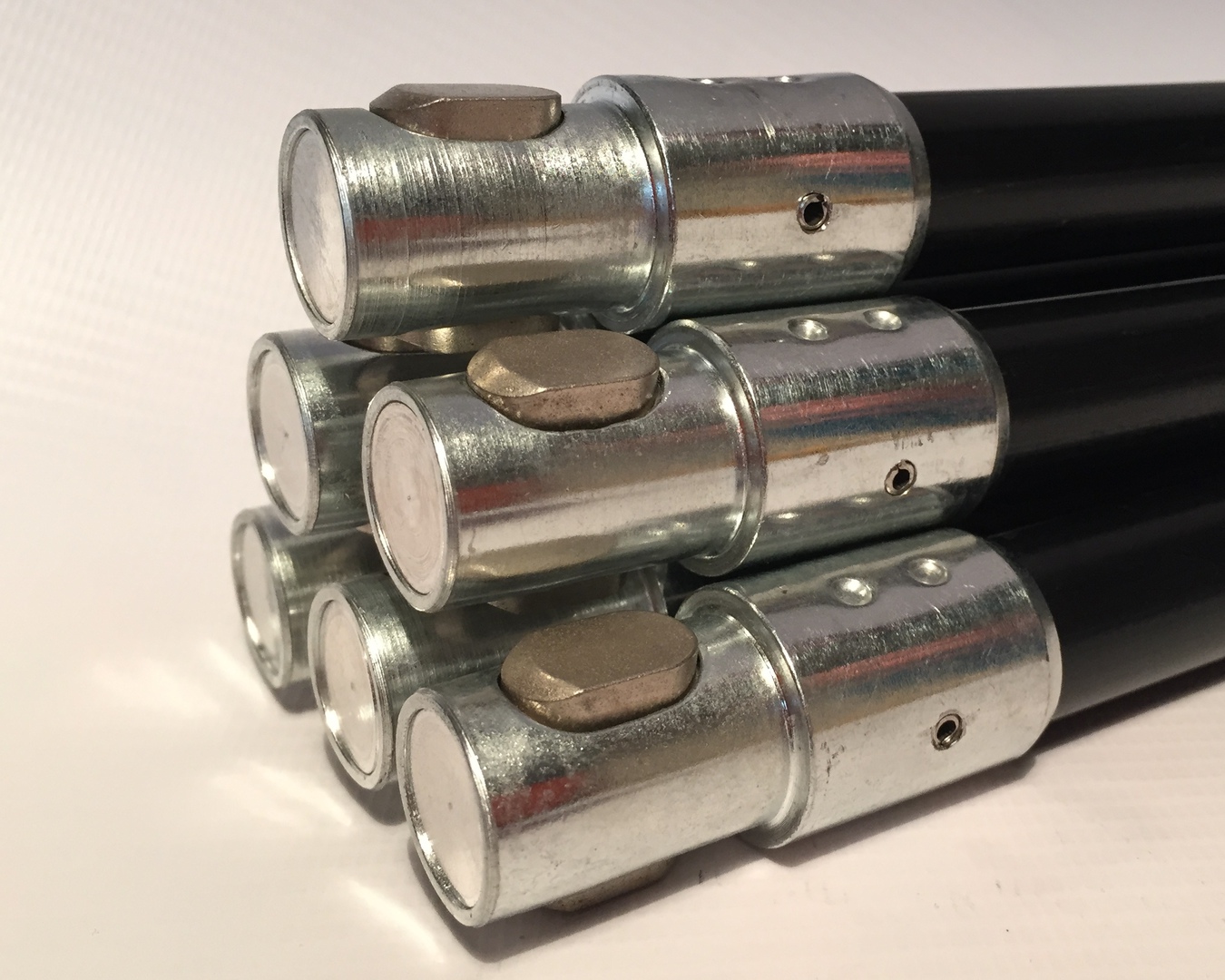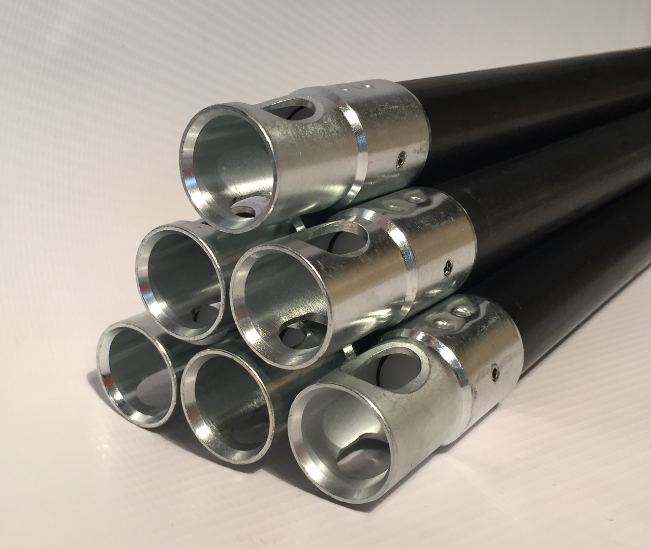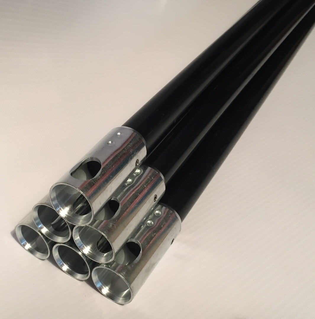 The 22mm rods are made from hollow Polypropylene and are quadruple crimped to the fittings/ferrules on either end of the rod, plus the steel is heat treated for extra strength/durability and double plated for extra corrosion resistance. They are a very stiff and light rod for working in tall flues and are great combined with the 22mm Aluminium Rods.