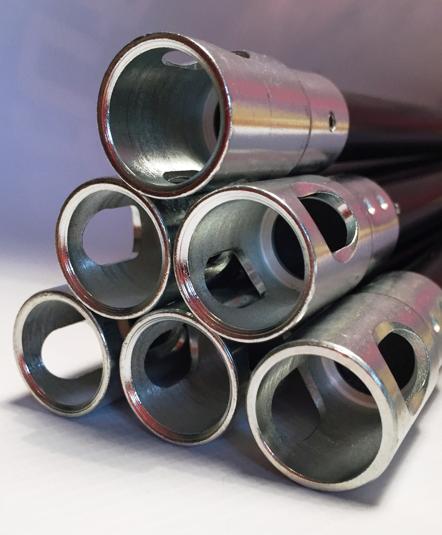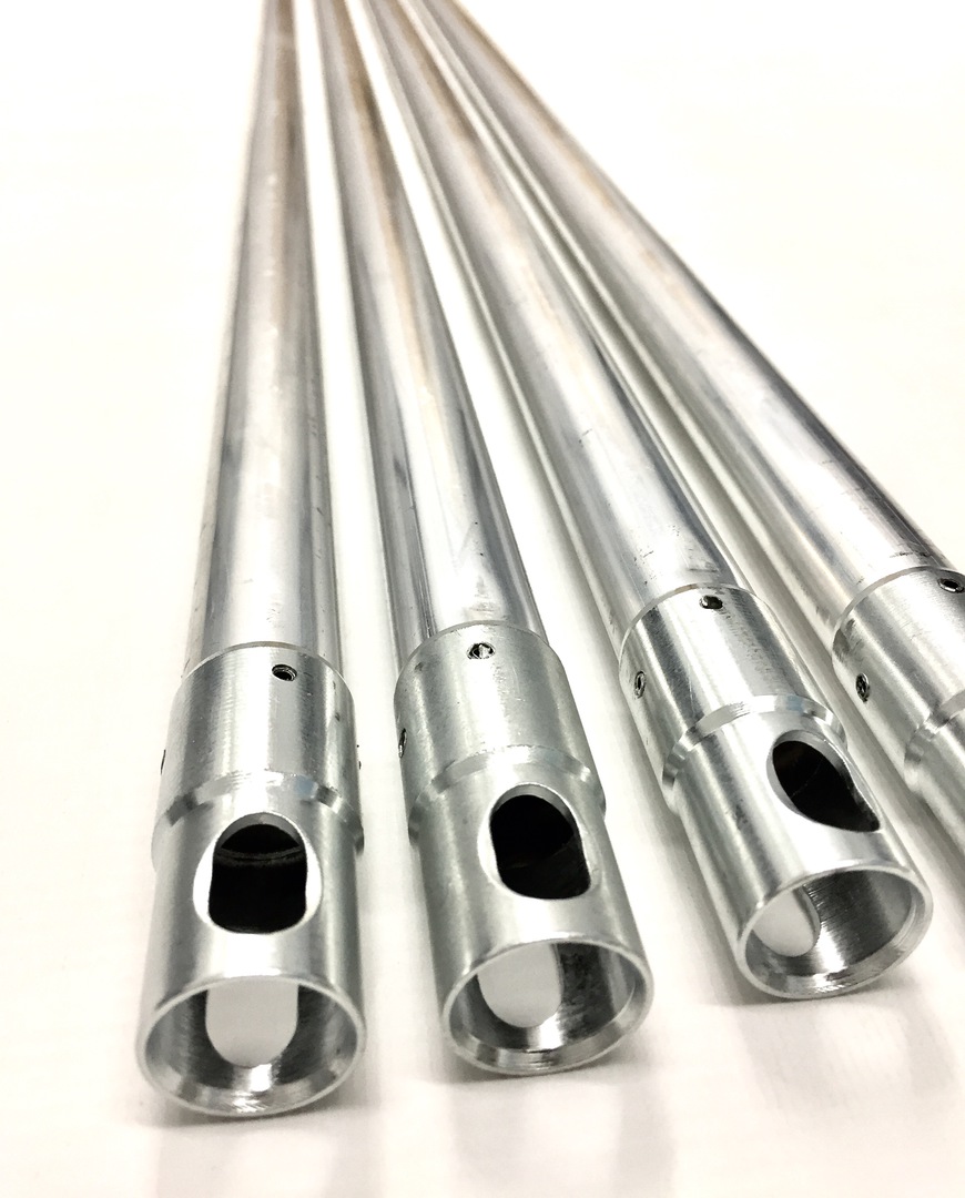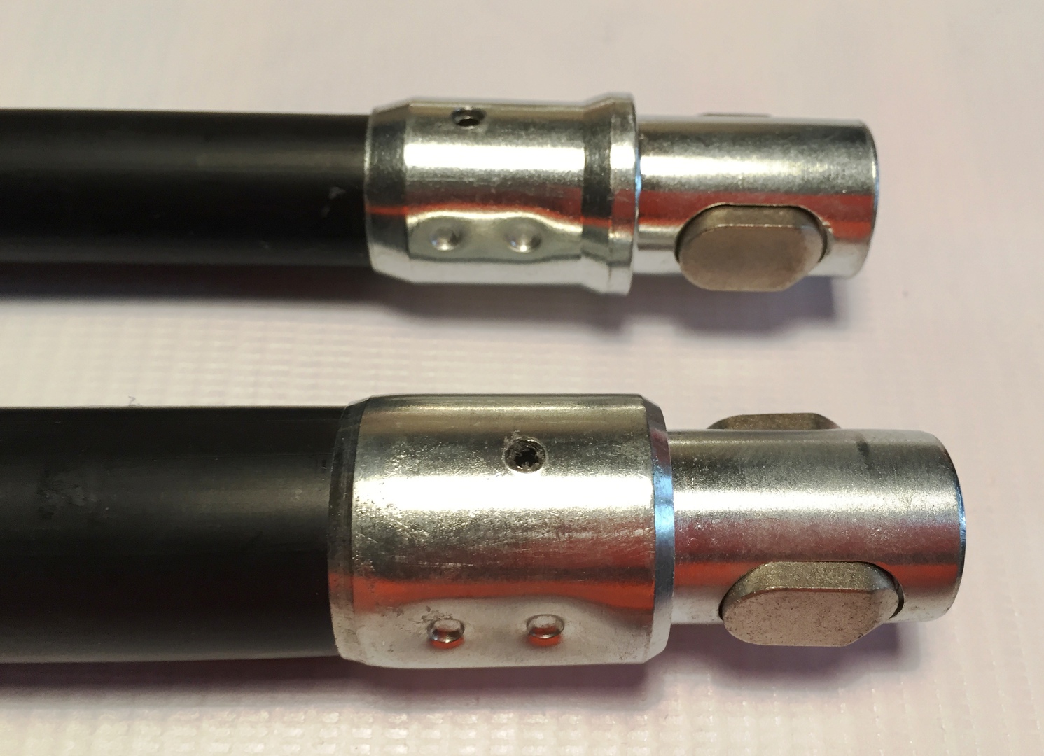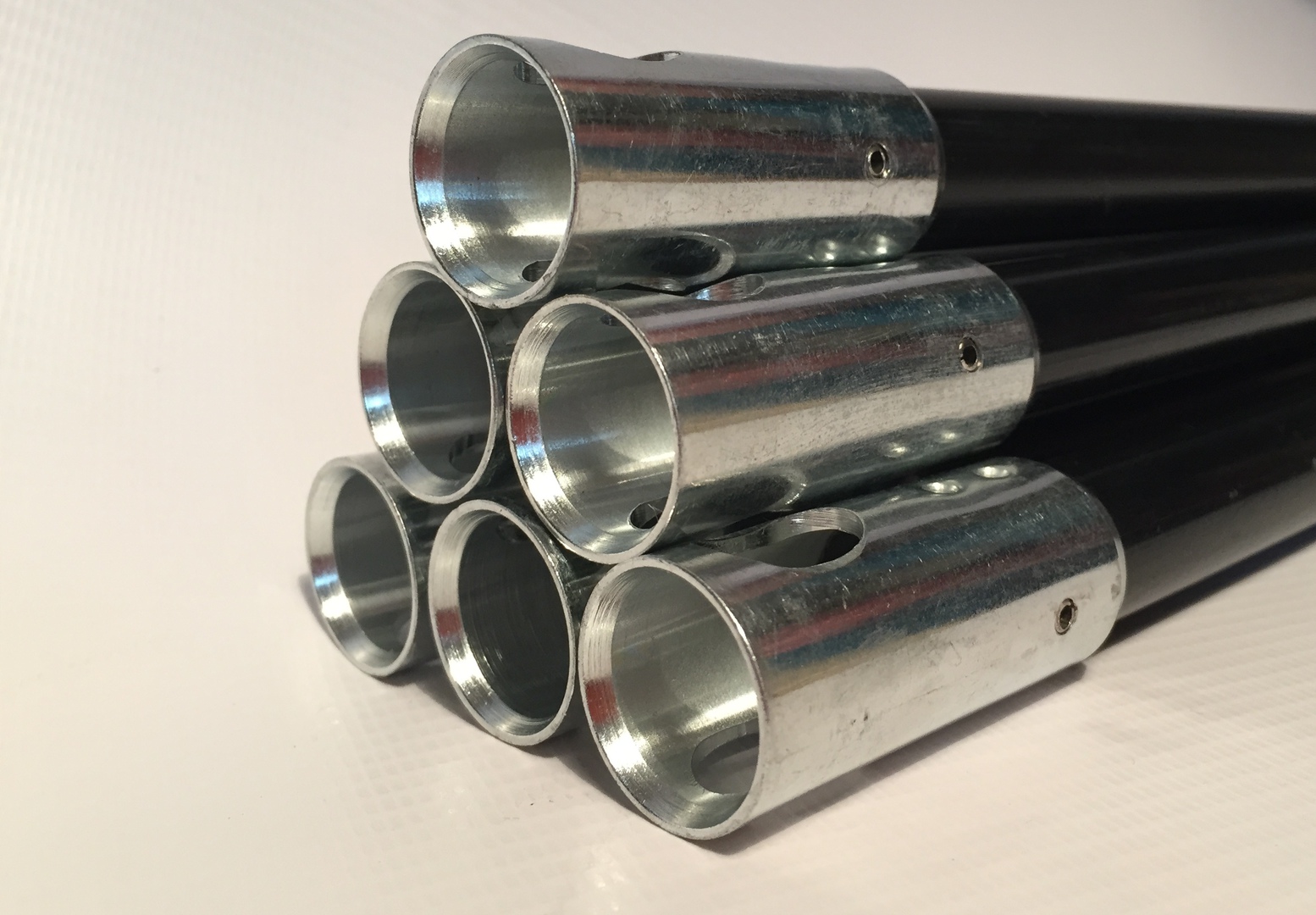 The 22mm rods are made from hollow Polypropylene and are quadruple crimped to the fittings/ferrules on either end of the rod, plus the steel is heat treated for extra strength/durability and double plated for extra corrosion resistance. They are a very stiff and light rod for working in tall flues and are great combined with the 22mm Aluminium Rods.