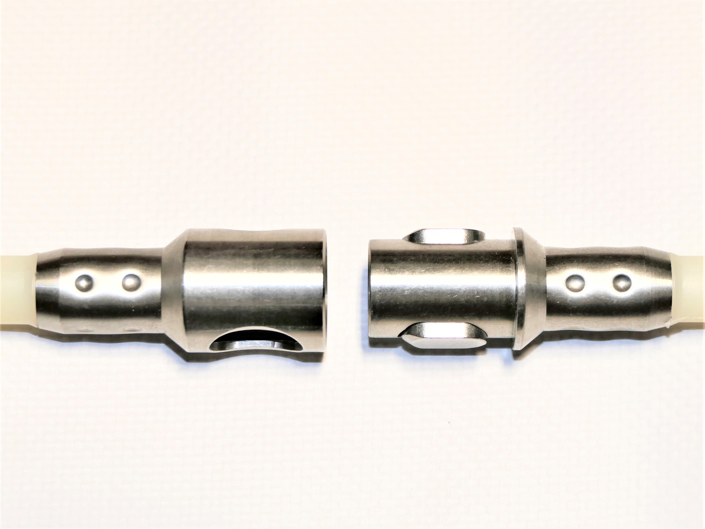 The 15mm, 18mm & 20mm rods are made from extremely durable solid nylon, quadruple crimped to the fittings/ferrules on either end of the rod, plus the steel is heat treated for extra strength/durability and double plated for extra corrosion resistance, with stainless steel double buttons for extra security. SnapLok also produce the 15mm and 18mm rods with stainless steel fittings/ferrules, the ultimate in non-corrosive metals longevity.